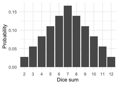 Dice sum | 2 | 3 | 4 | 5 | 6 | 7 | 8 | 9 | 10 | 11 | 12 |