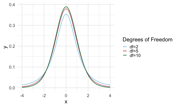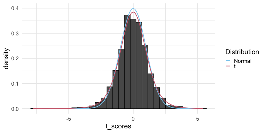 We will use t-distributions for inference, that is, for obtaining confidence intervals and hypothesis testing.